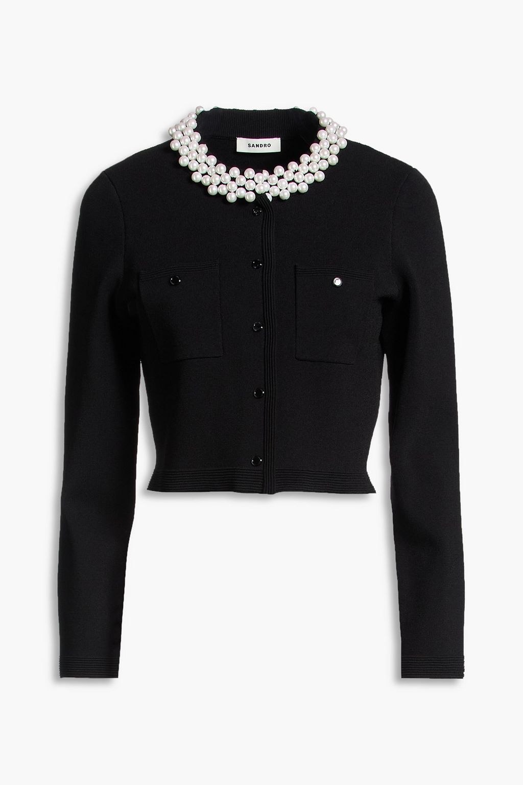 SANDRO Faux pearl-embellished stretch-knit cardigan