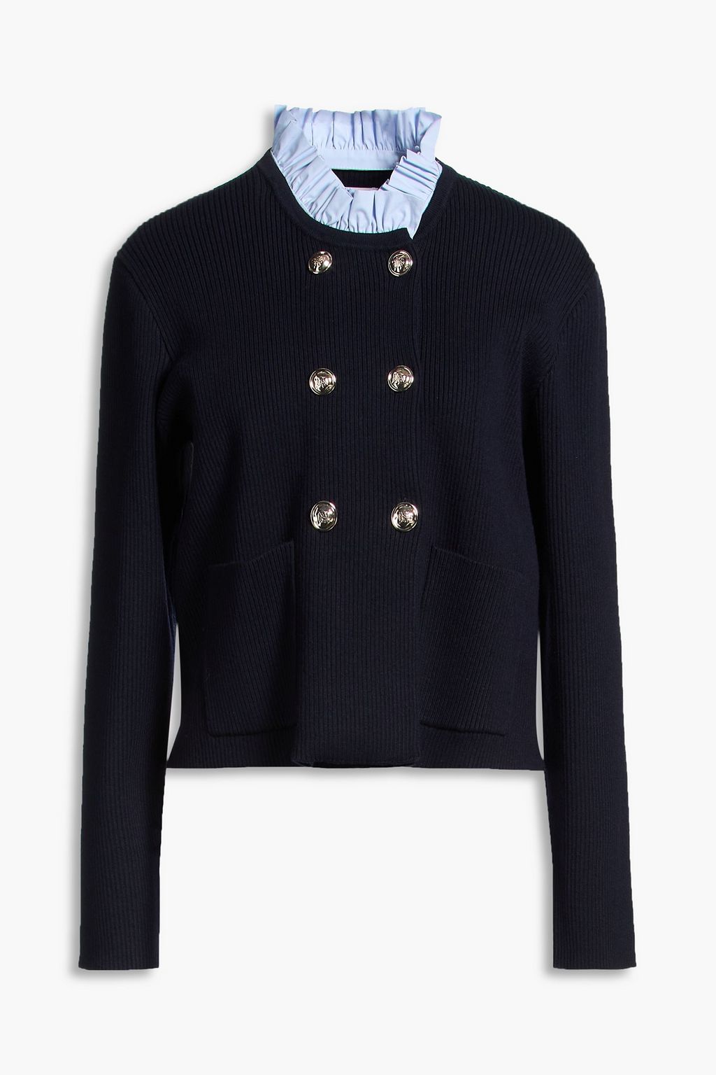 SANDRO Poplin-trimmed ribbed wool-blend cardigan