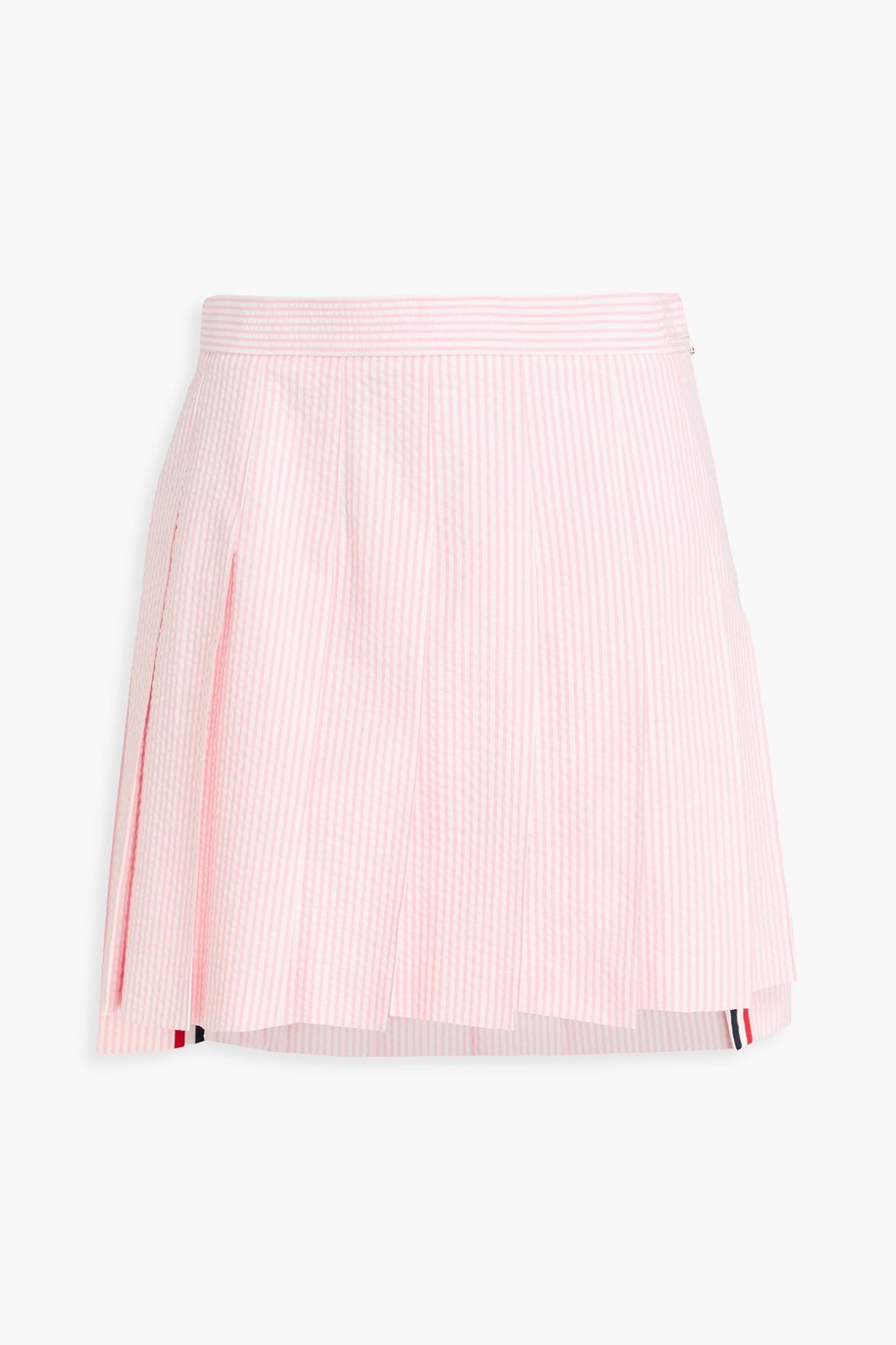 THOM BROWNE Pleated striped cotton-seersucker mini skirt