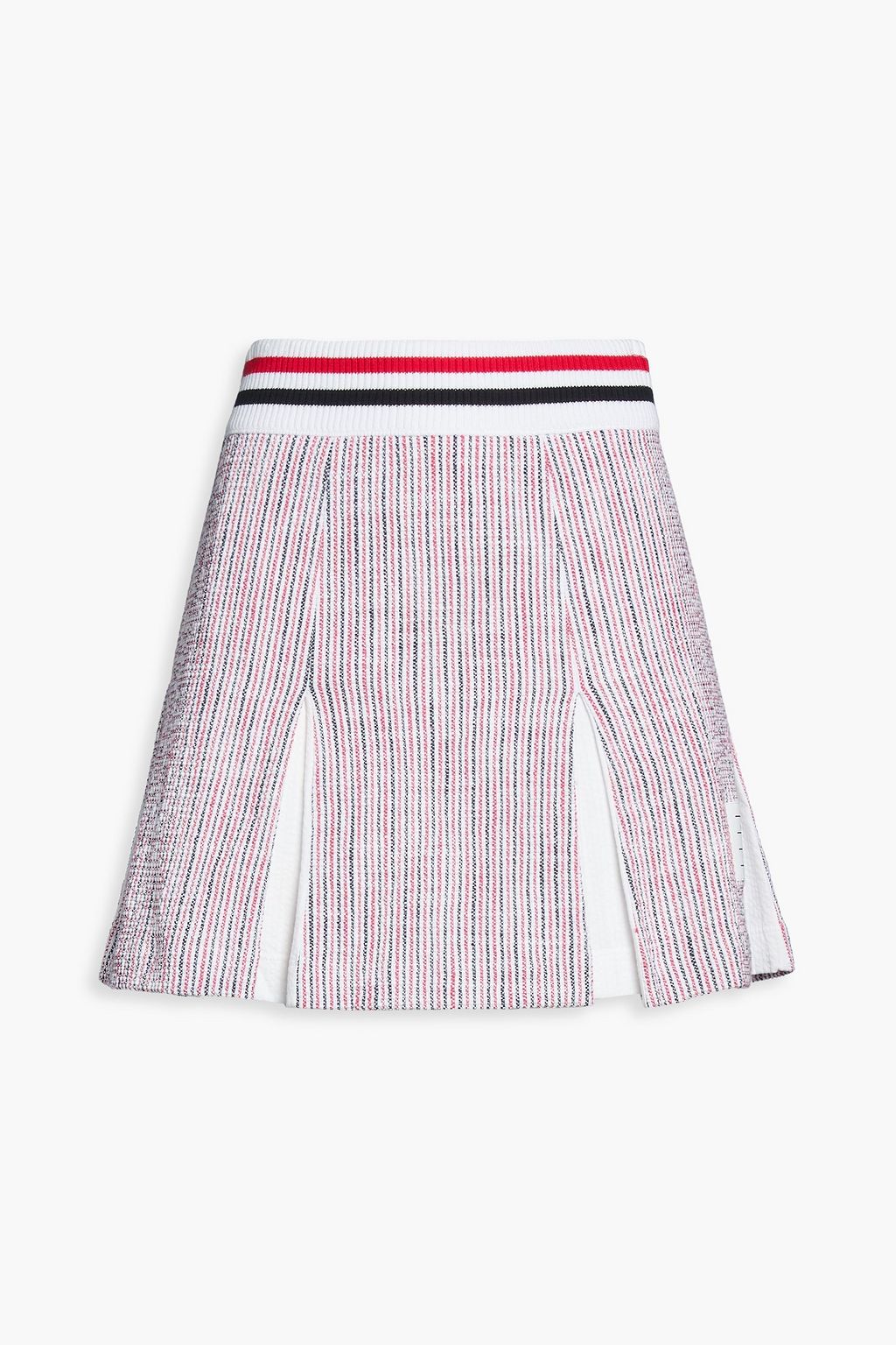 THOM BROWNE Pleated striped seersucker and cotton-blend tweed mini skirt