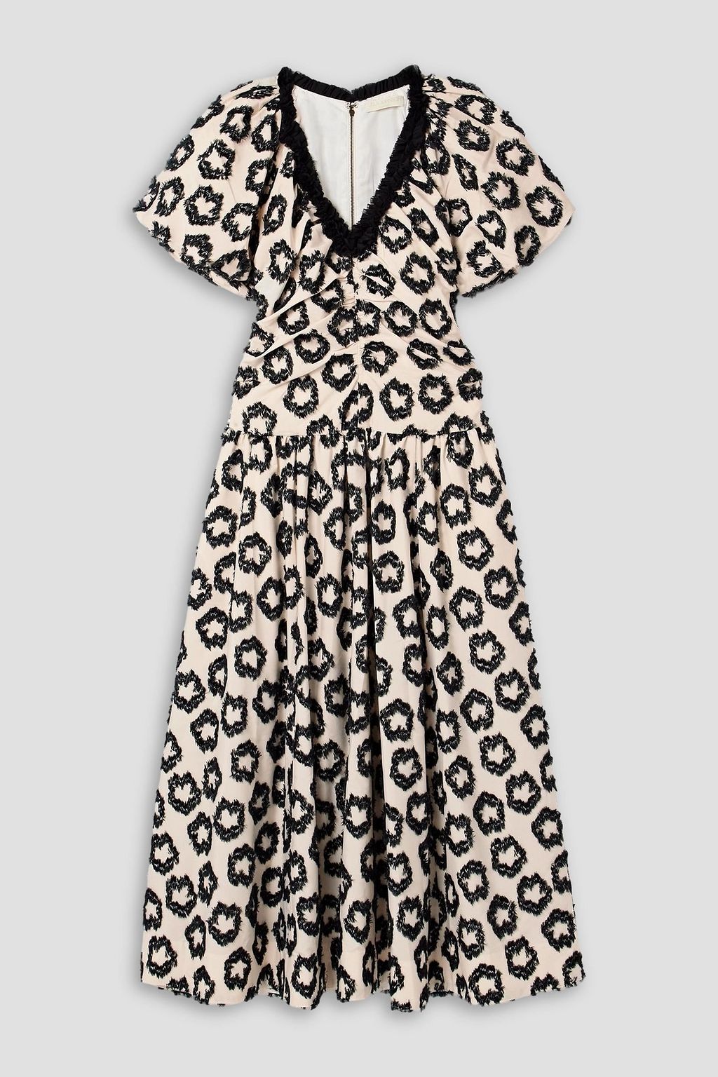 ULLA JOHNSON Violeta chiffon-trimmed ruched fil coupé recycled-faille midi dress