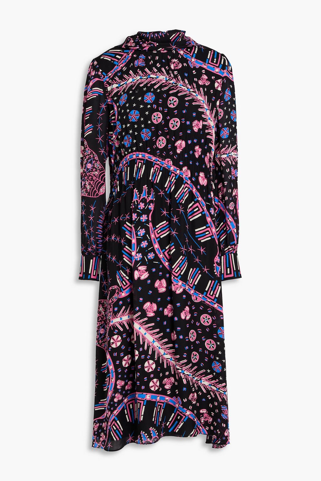 VALENTINO GARAVANI Pintucked printed silk crepe de chine midi dress