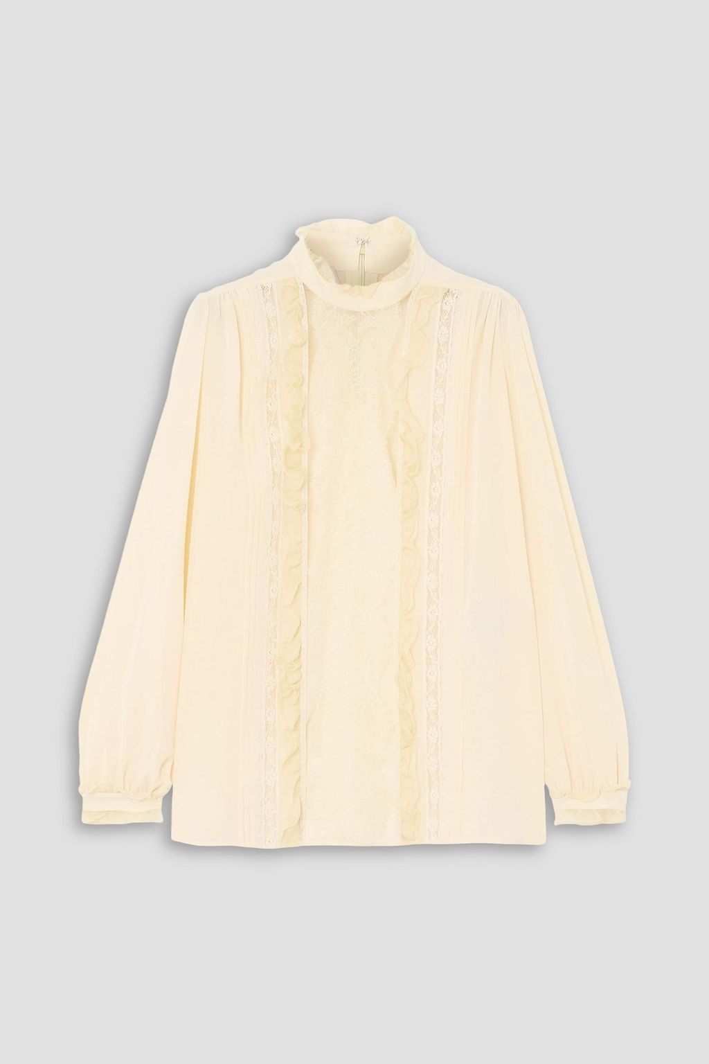 VALENTINO GARAVANI Ruffled pintucked lace-trimmed silk crepe de chine blouse