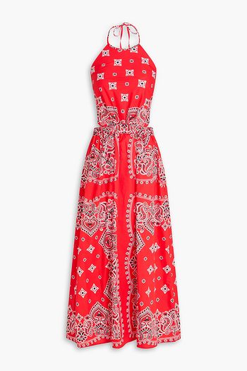 Embellished crochet-knit cotton-blend halterneck maxi dress