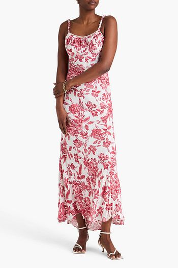 Fringed floral-print silk-twill maxi dress
