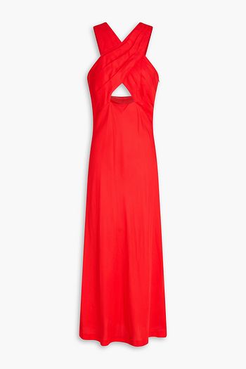 Bow-detailed cutout stretch-cotton poplin midi dress