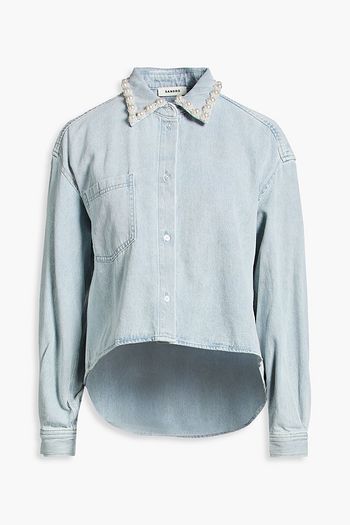 Faux pearl-embellished denim shirt