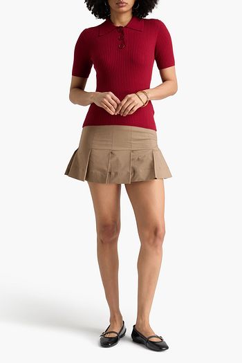 Cropped ruffled crochet-trimmed ribbed-knit tank