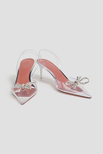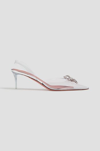 Embellished leather-blend slingback pumps