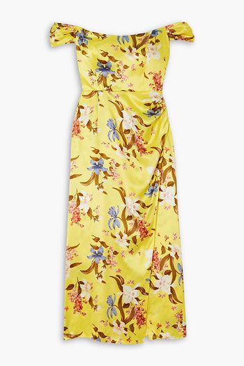 Off-the-shoulder embroidered charmeuse and tulle midi dress