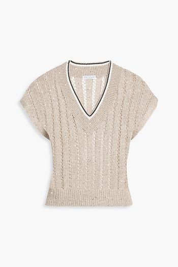 Cable and open-knit jute-blend sweater