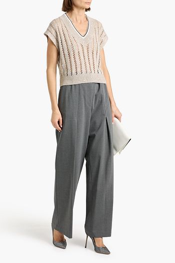 Sequined pointelle-knit wool sweater