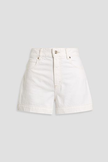 Denim-trimmed cotton-blend terry shorts