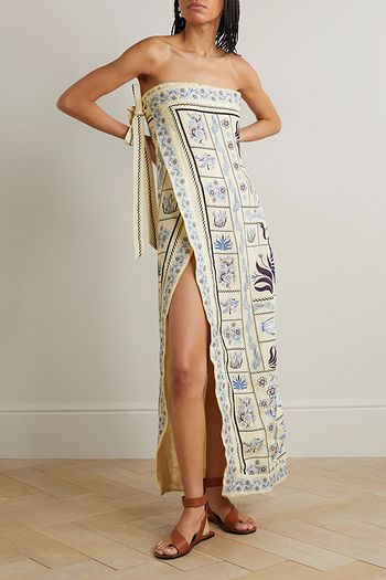 Mercedes Poliilla cold-shoulder printed linen midi dress