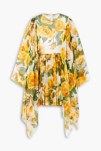 Gathered floral-print silk crepe de chine mini dress