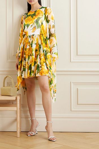 Pleated floral-print silk-blend chiffon dress