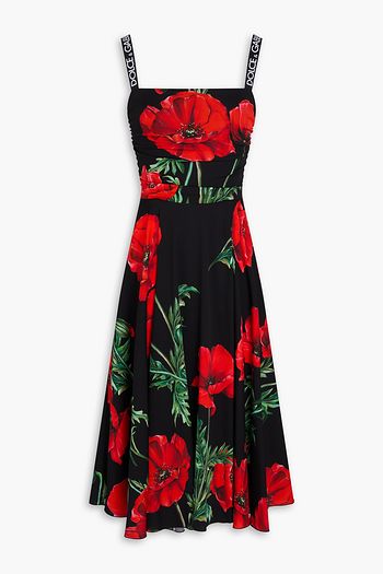 Draped floral-print silk-blend crepe midi dress
