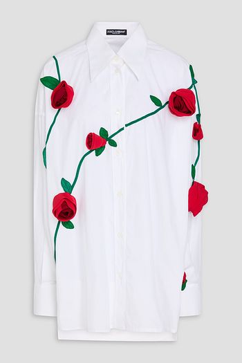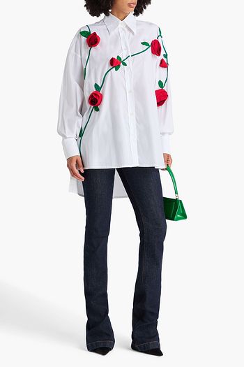 Floral-appliquéd cotton-poplin shirt
