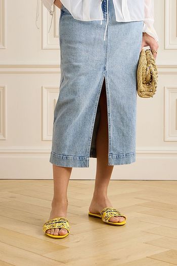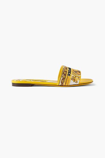Maiolica Bianca leather-trimmed embroidered canvas slides