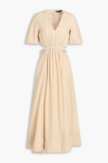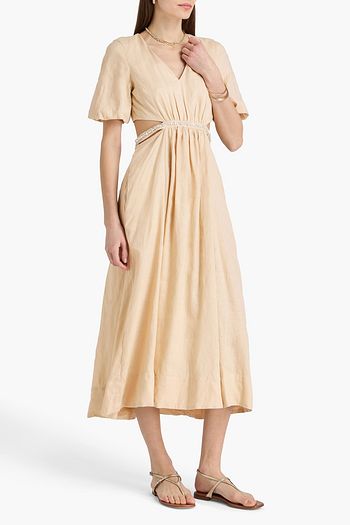 Bead-embellished cutout linen midi dress
