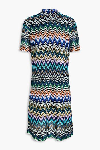 Metallic crochet-knit cotton-blend shirt dress