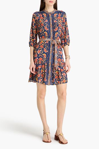 Tyra belted tie-dyed silk crepe de chine mini dress