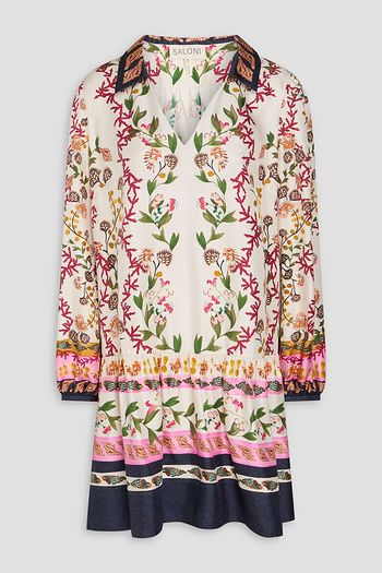 Grace off-the-shoulder printed silk crepe de chine mini dress