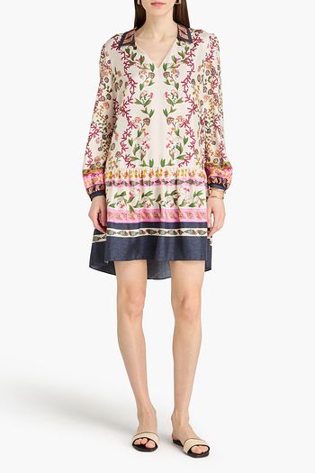 Grace off-the-shoulder floral-print silk crepe de chine mini dress
