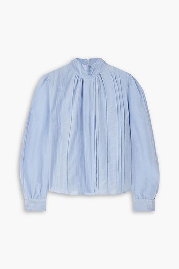 Teresa pintucked cotton and silk-blend voile turtleneck blouse