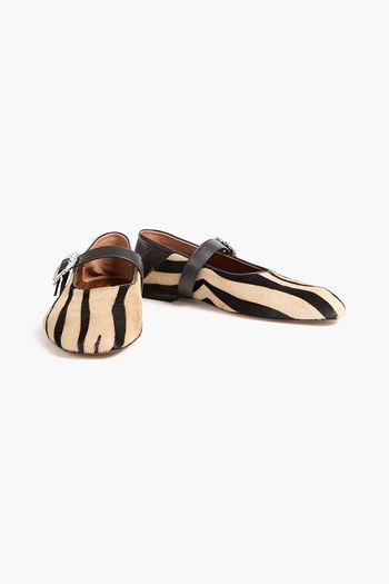 Zebra-print calf hair collapsible-heel Mary Jane flats