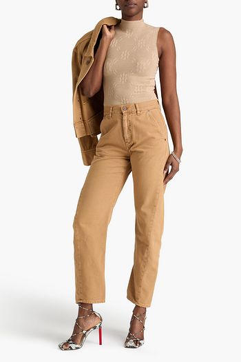 Striped cotton-poplin and stretch-jersey bodysuit