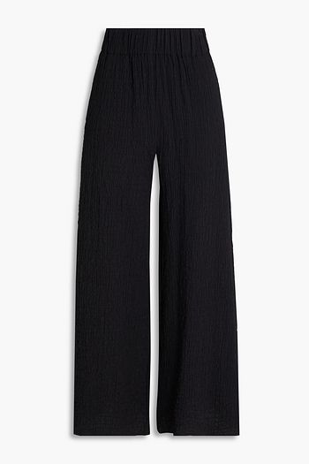 Cotton-blend seersucker wide-leg pants