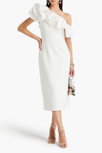 One-sleeve draped crepe midi dress