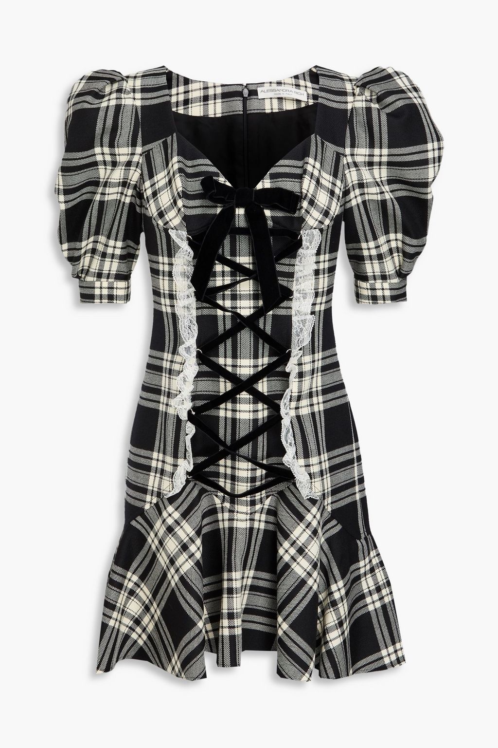 ALESSANDRA RICH Lace-trimmed checked wool-flannel mini dress