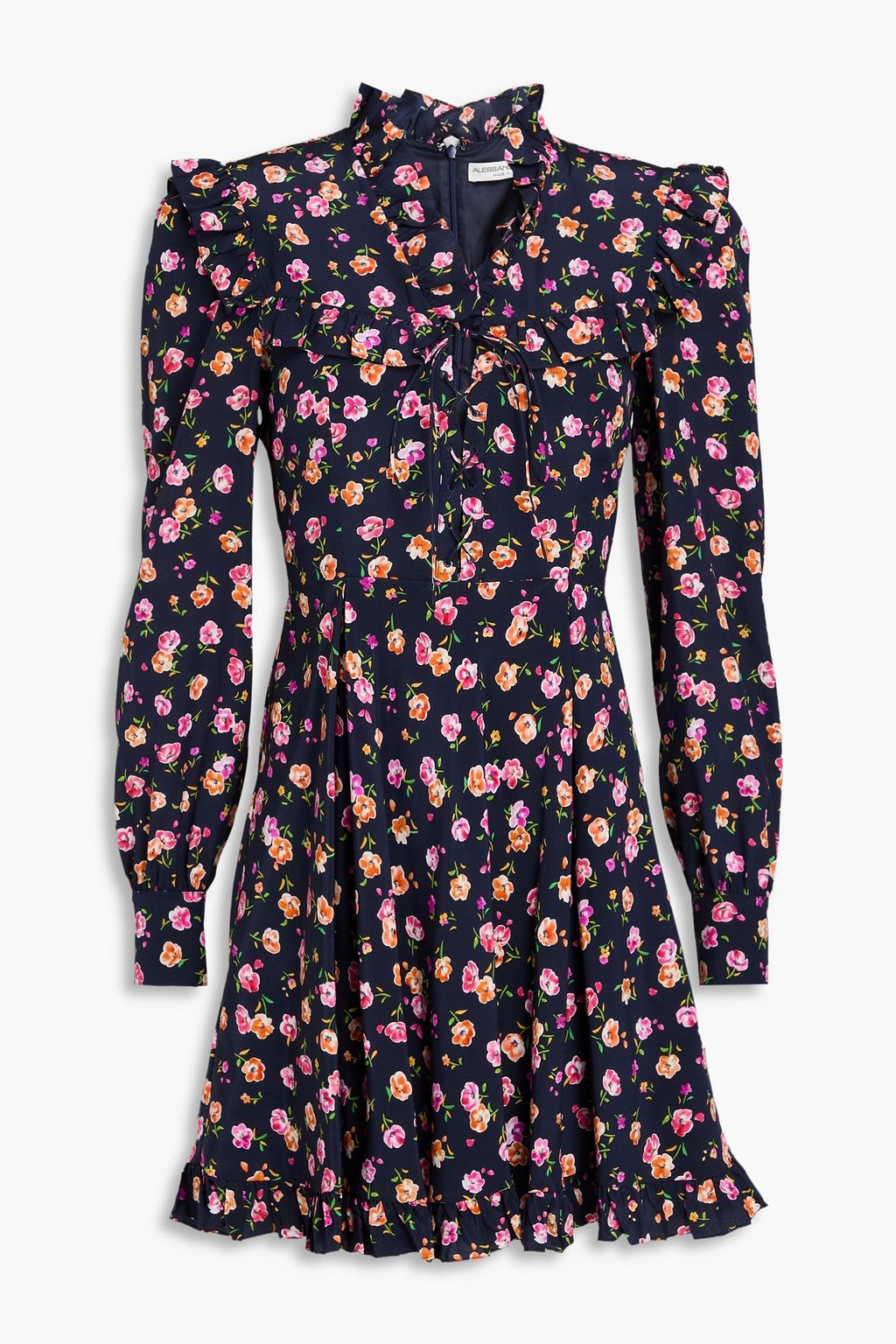 ALESSANDRA RICH Pleated floral-print silk crepe de chine mini dress