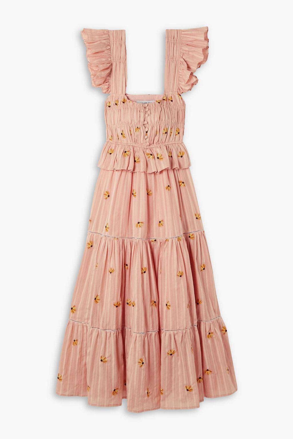 LUG VON SIGA Sophie pleated tiered embroidered cotton-poplin maxi dress