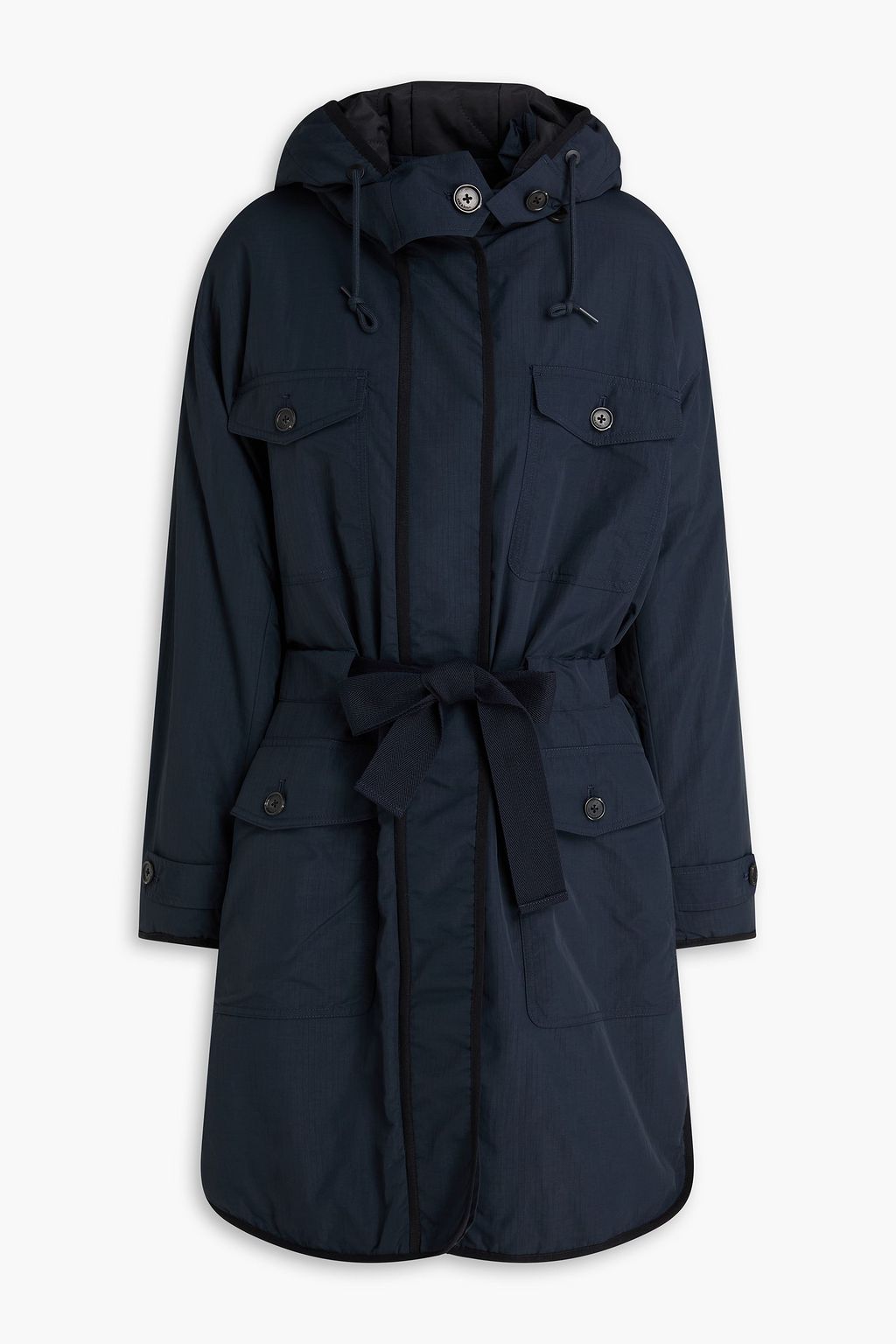 - Designed for a loose fit, use the tie belt to cinch in at the waist