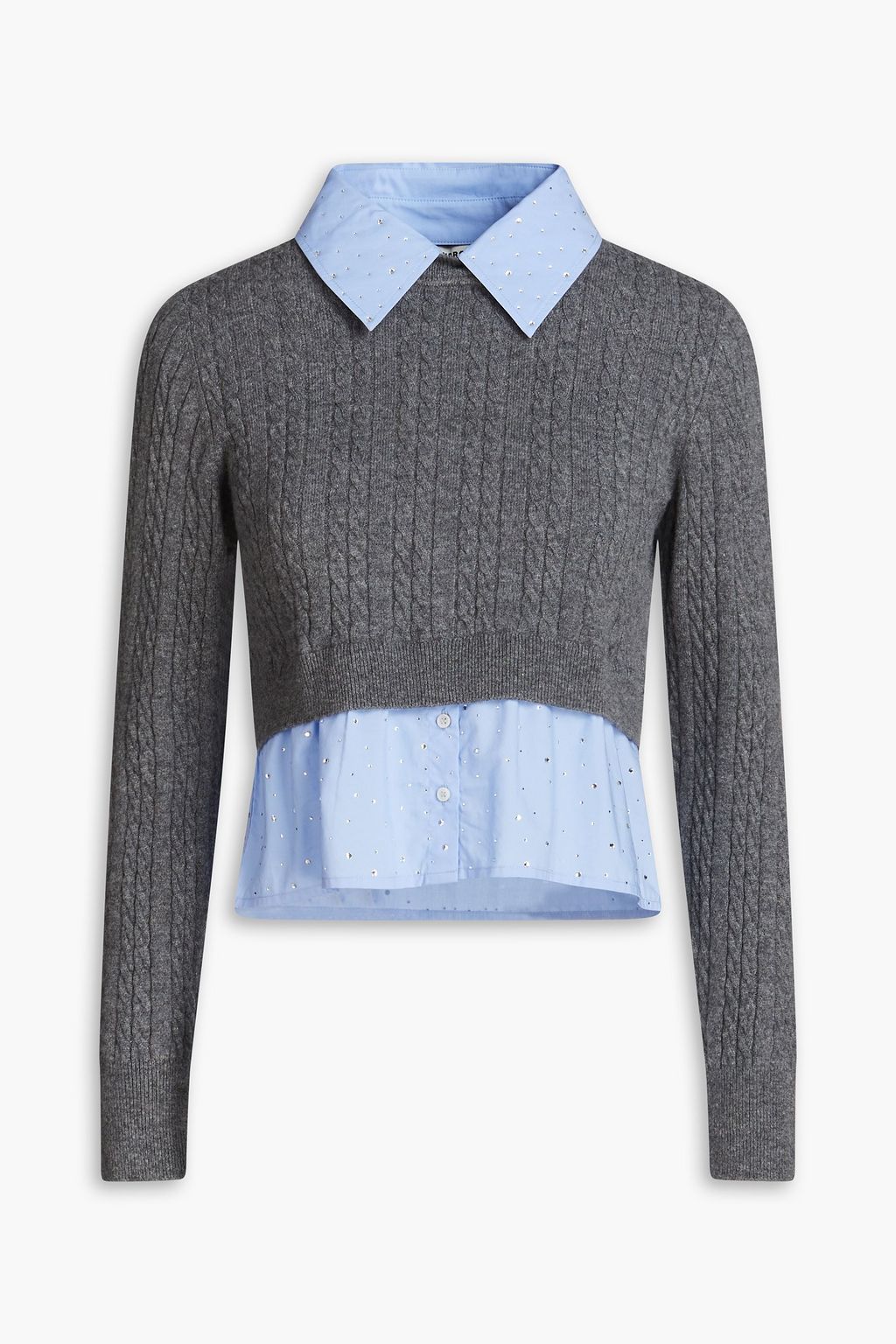 SANDRO Cotton-poplin paneled cable-knit wool and cashmere-blend sweater