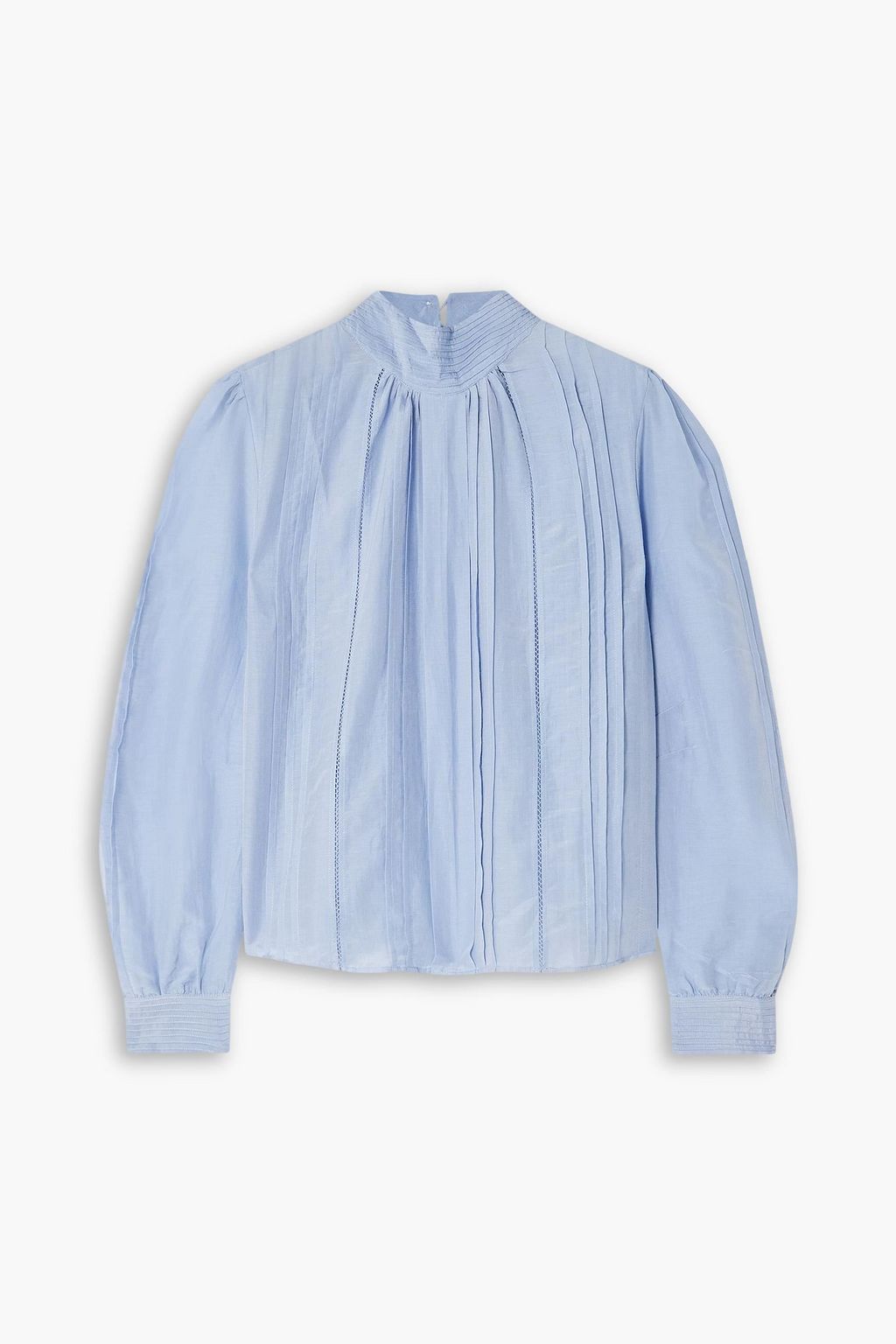 THIERRY COLSON Teresa pintucked cotton and silk-blend voile turtleneck blouse