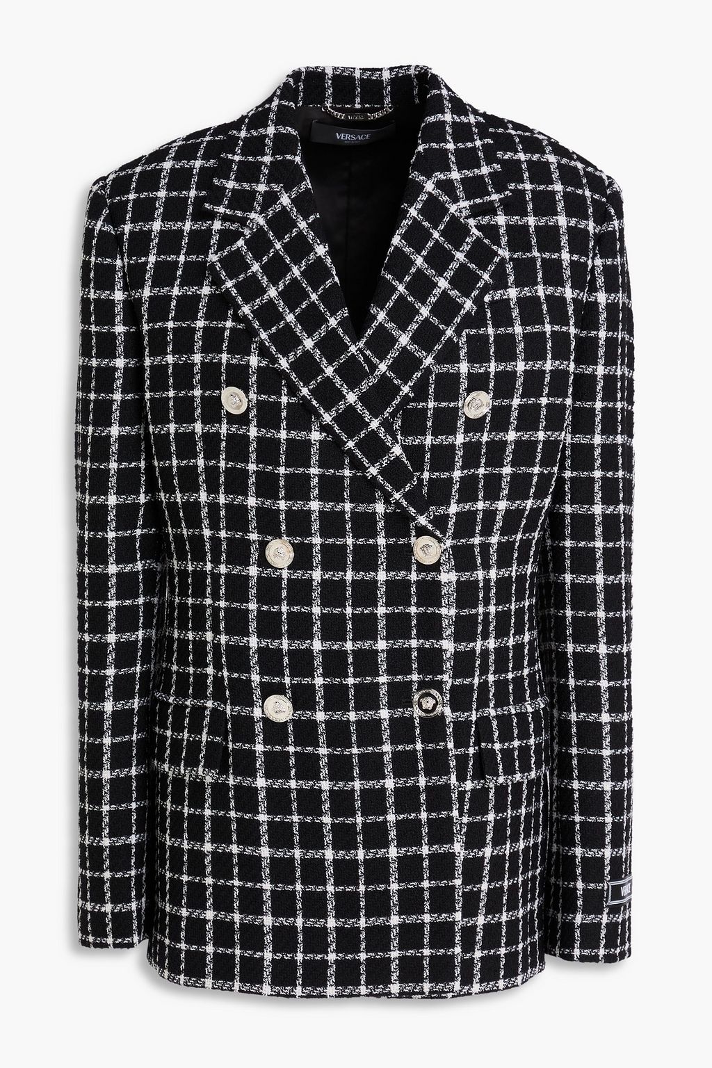 VERSACE Double-breasted checked wool-blend tweed blazer