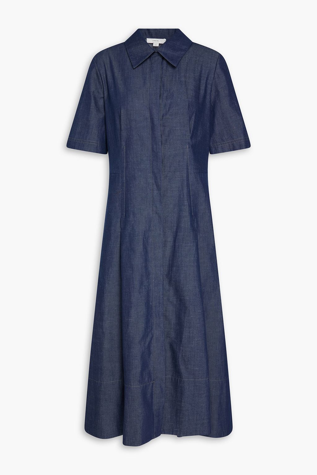 VINCE. Pleated denim midi shirt dress