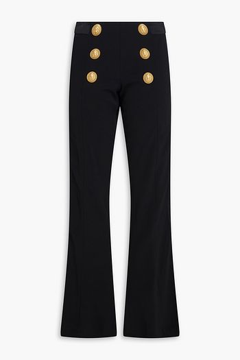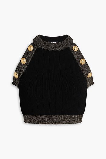 Cropped off-the-shoulder embellished ribbed-knit sweater