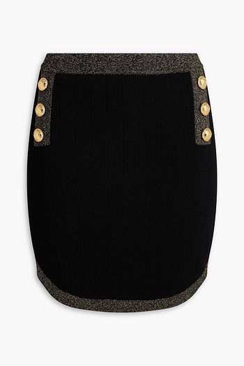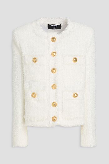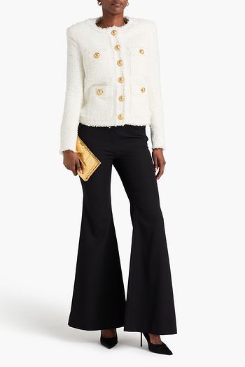 Wrap-effect frayed cotton-blend tweed mini skirt