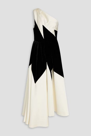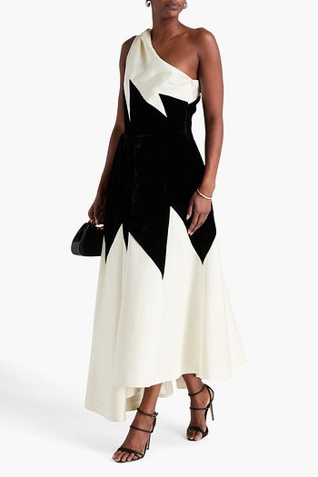 One-shoulder asymmetric duchesse-satin gown