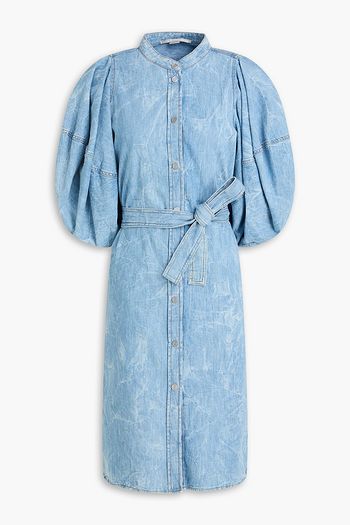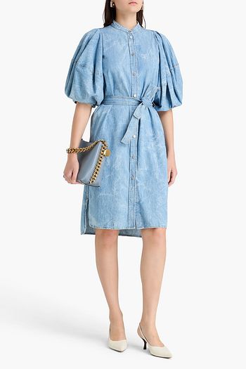 Belted patchwork cotton and linen-blend denim midi dress