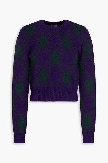 Cropped striped wool, cashmere and silk-blend turtleneck sweater