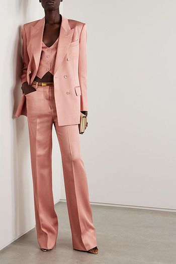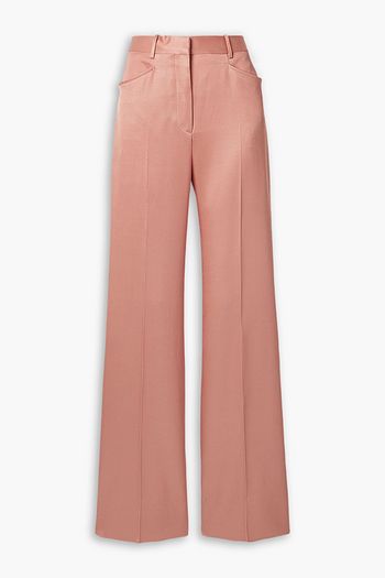 Satin-trimmed wool, mohair and silk-blend flared pants
