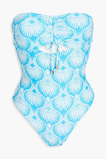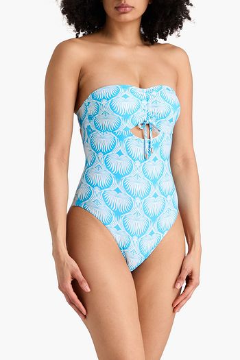 Strapless floral-print underwired bandeau bikini top