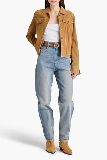 Belted faded high-rise tapered jeans