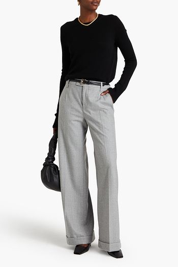 Cropped cotton and wool-blend jacquard wide-leg pants